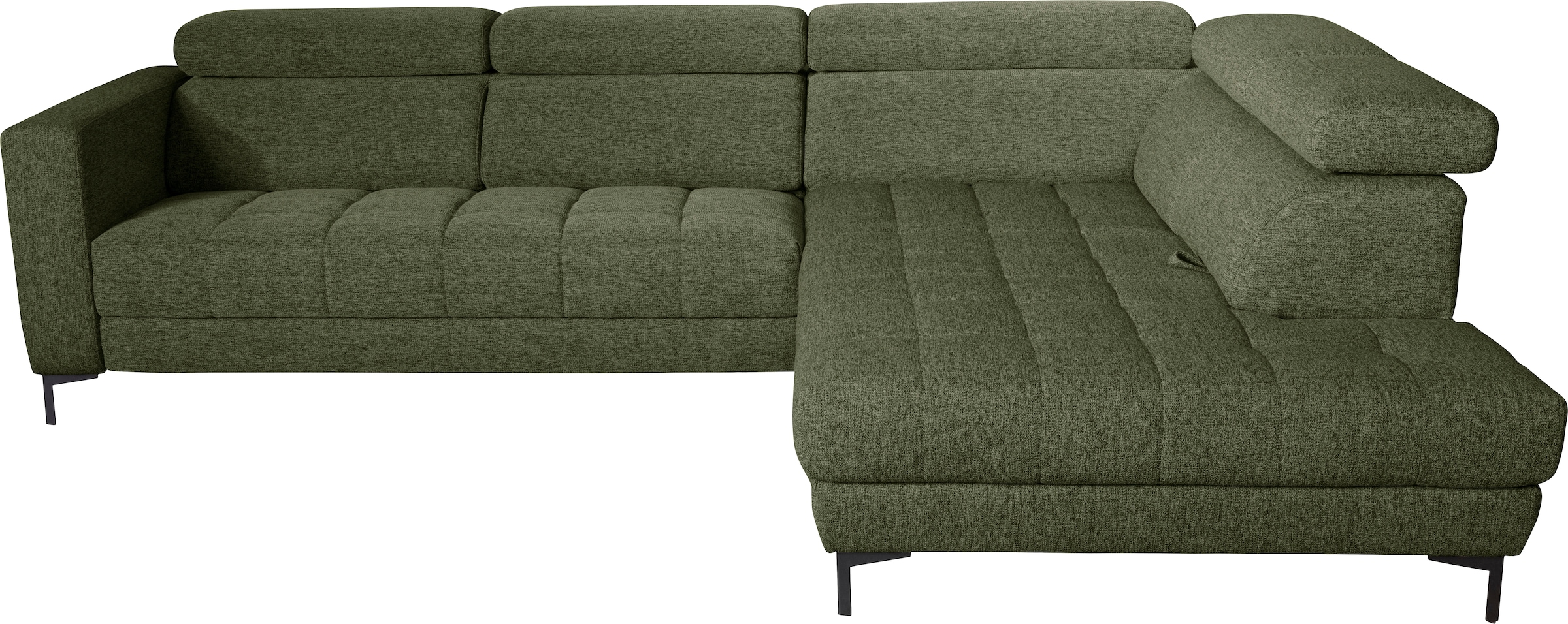 Ecksofa ALINA "Bahira", grün (olivgrün tat 333), B:306cm H:105cm T:222cm, Struktur TAT (100% Polyester), Sofas, Inkl. Rückenlehnen- und Sitztiefenverstellung, Breite 306 cm