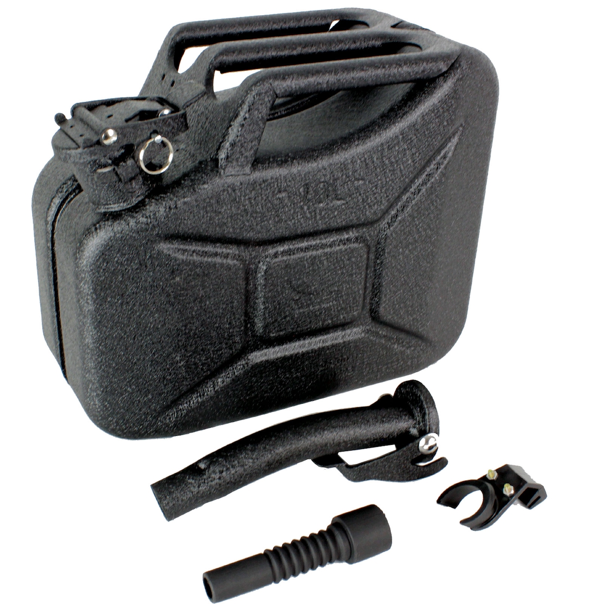 Baumarktplus 1x Benzinkanister Kraftstoffkanister Metall 10 L Hammerschlag kratzfest inkl. Ausgießer + Halter schwarz