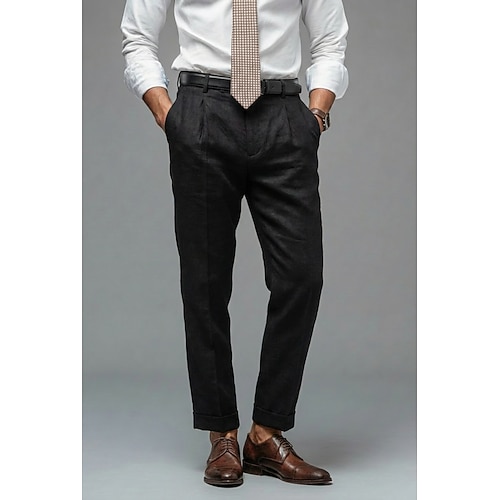 Uomo Cotone Lino Pantaloni Eleganti Pantaloni casual Affari Festa serale Elegante Classico Nero Bianco Cachi Tinta unica Vestibilità su misura Lungo Inelastico