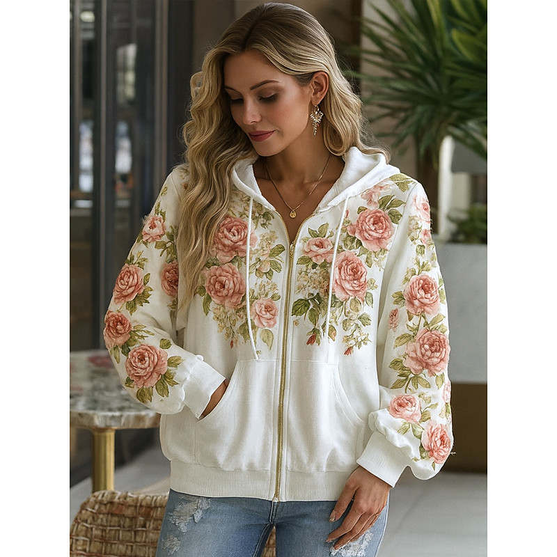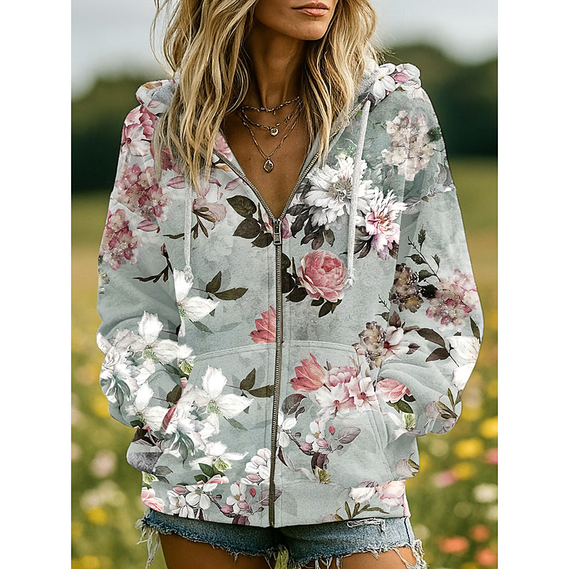 Women's 3D Print Vintage Boho Hoodie Patchwork Hoodie Sweatshirt Floral Zip Up s Fashion Casual Long Sleeve Hooded Street Dailywear Casual Patchwork Zipper Pocket Pink Red Blue Spring Fall