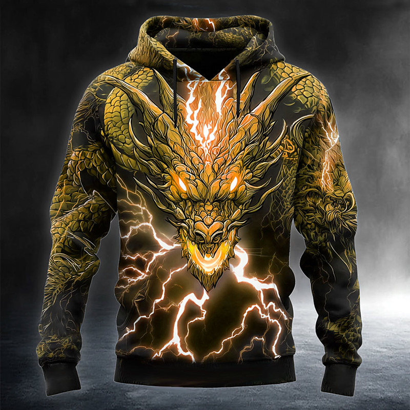 Men's Dragon 3D Print Hoodie Sweatshirt 3D Fantasy Long Sleeve Crew Neck Gift Club Streetwear Yellow Red Blue Green Drawstring Fall Winter Designer S M L XL XXL XXXL