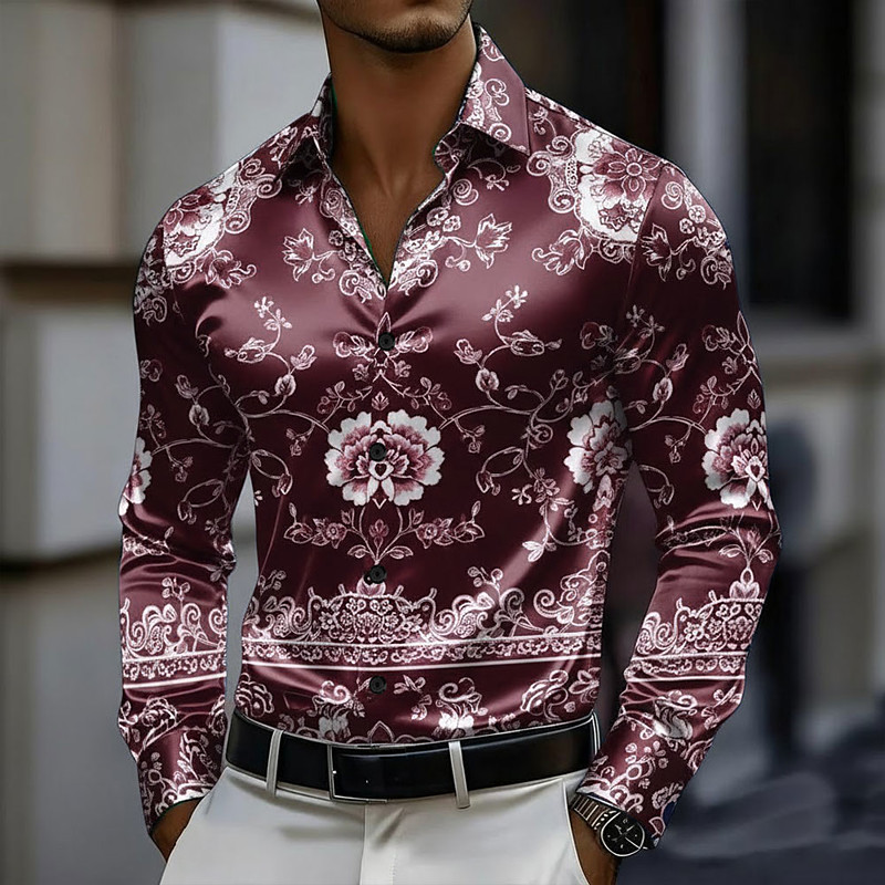 Men's Floral Print Ethnic Flowers Shirt Satin Shirt Dress Shirt Long Sleeve Vintage Retro Vacation Dailywear Summer Spring Fall Turndown 3D Print Button Up Shirts Blue Red Purple Green