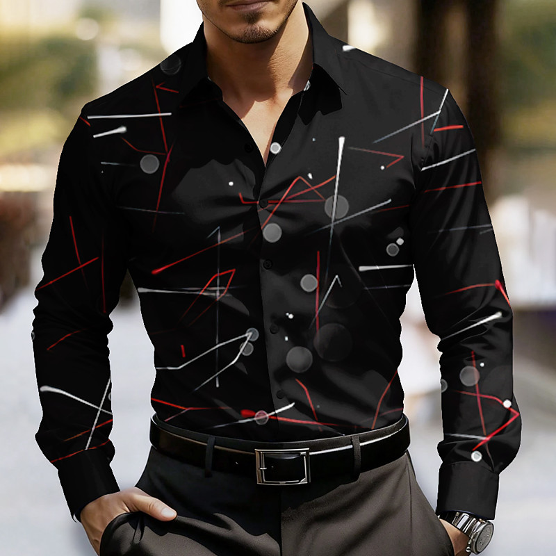 Men's Geometric Pattern Line Abstract Art Shirt Button Up Shirt Long Sleeve Fashion Casual Outdoor Dailywear Spring Fall Turndown 3D Print Collared Shirts Black Red Black / Blue Black / Orange