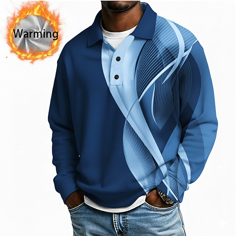 Men's Geometic Line Polo Shirts Themmal Shirts Long Sleeve Polo Shirts Lapel Casual Athleisure Holiday Daily Wear 3D Print Spring Fall Winter Blue Black Red