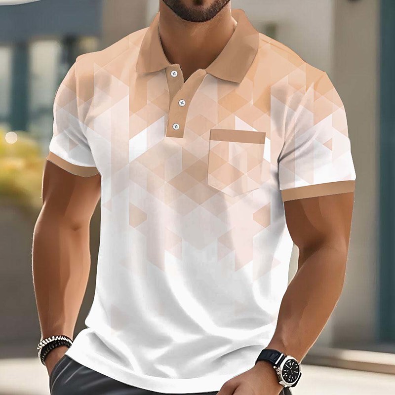 Men's Geometric Hawaiian Polo Shirts Golf Shirt Short Sleeve Polo Shirts Collared Shirts Casual Beach Wear Vacation Wear Party Outfits Buttons 3D Print Spring Summer Dark Brown Red Blue