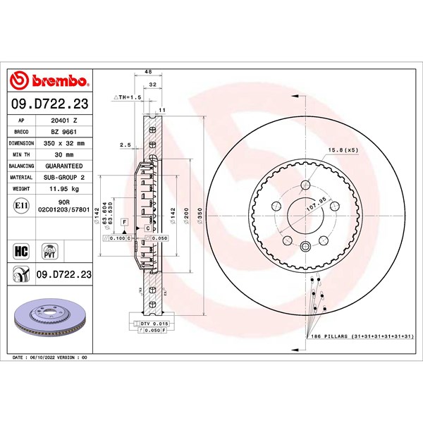 Jarrulevy jarrulevy kaksiosainen, Etuakseli Brembo 09.D722.23 - land rover range rover velar - OE LR141755, LR161916