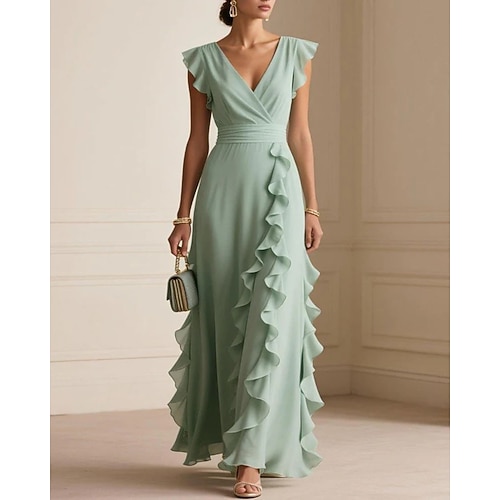 Per donna Abito Lungo Maxi Abito Abito da Ballo Vestito da Festa Tubino Elegante Moda Moderno Festa serale Feste Occasione speciale Vestibilità regolare Semplice Senza Maniche Scollo a V Verde chiaro