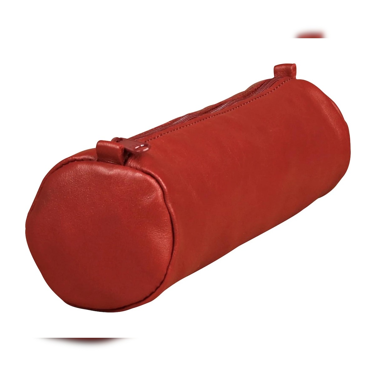 Clairefontaine 8x Age Bag, rundes Schlampermäppchen aus Leder, 21xØ6 cm - Rot 77029C