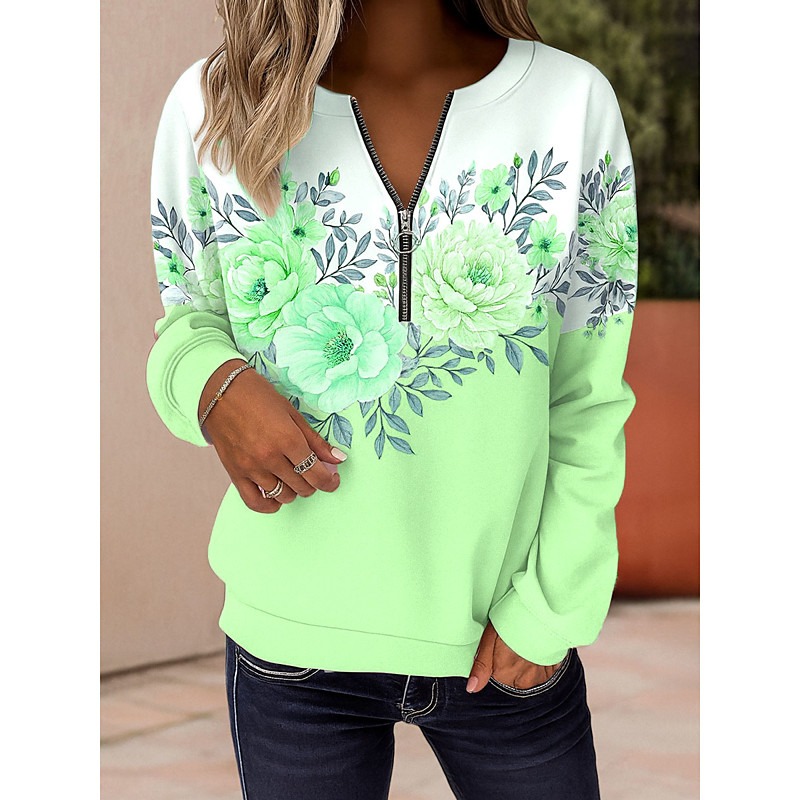 Women's Pullover Sweatshirt Zip Up Sweatshirts Floral Graphic Fashion Casual Long Sleeve Crew Neck Regular Tops Street Dailywear Zipper Print Pink Blue Purple Green Spring Fall Winter