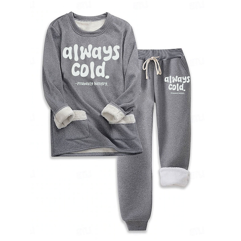 Women's Warm Daily Two Piece Sets Tracksuit Pants Sets Long Sleeve Crew Neck Graphic Letter Drawstring Print Casual Daily Black Pink Blue Fall Regular Fit