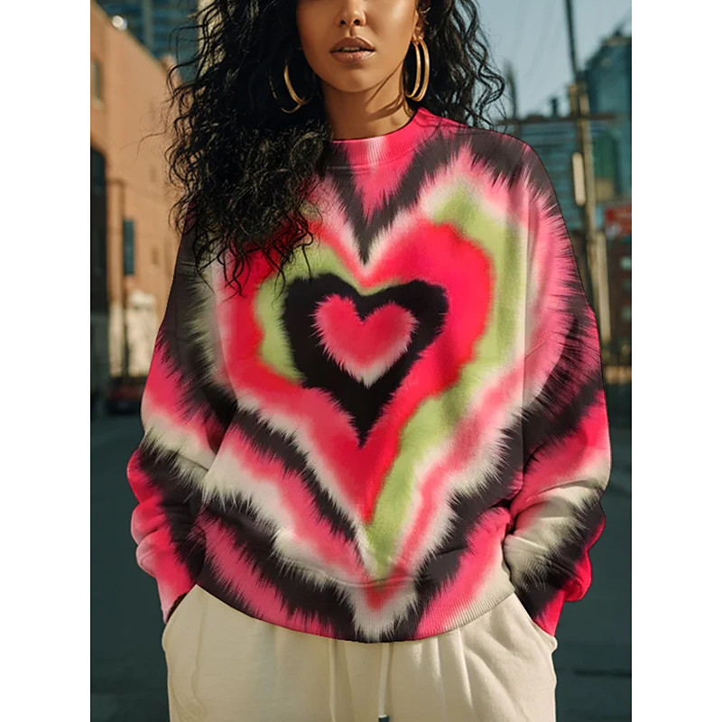 Women's Pullover Sweatshirt Heart Graphic Casual Long Sleeve Crew Neck Regular Tops Street Dailywear Casual Red Blue Orange Green Gray Fall Winter