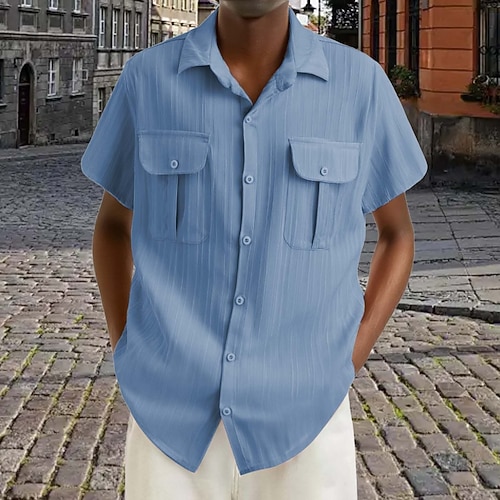 Per uomo Camicia Tessuto Camicia da lavoro Camicia Jacquard Marrone Scuro Nero Bianco Rosa Vino Manica Corta Semplice Bavero Quotidiano Vacanza Tasca Abbigliamento Streetwear Casual