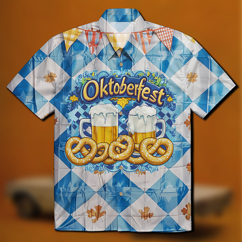 Bavarian Munich German Hawaiian Shirts Aloha Shirt Beer Pretzel Graphic for Men's Adults' 3D Print for Carnival Oktoberfest Beer Vacation Party