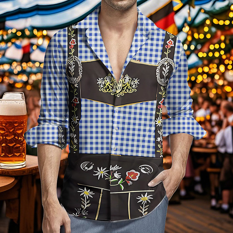 Oktoberfest Shirt Lederhosen Shirt 100% Cotton Carnival Oktoberfest Beer Costume Check Pattern Shirt Bavarian German Alpine Wiesn Party Beer Festival Traditional Style Cloth