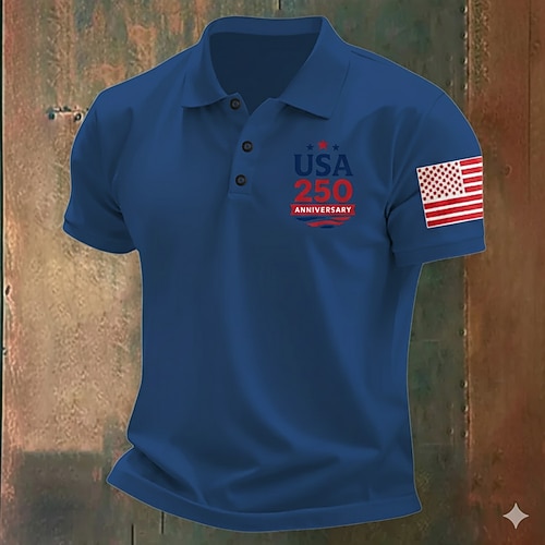 Giorno dell'Indipendenza Americana Per uomo Bandiera Americana Polo Manica Corta Magliette polo Camicie con Colletto Casual Streetwear Athleisure Abito da festa Bottoni Estate Blu Nero Bianco