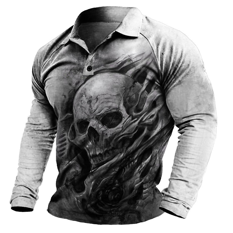 Men's Skull Lightning Skeleton Shirt Button Up Shirt Long Sleeve Dark Gothic Style Outdoor Holiday Summer Spring Turndown 3D Print Collared Shirts Dark Gray Gray