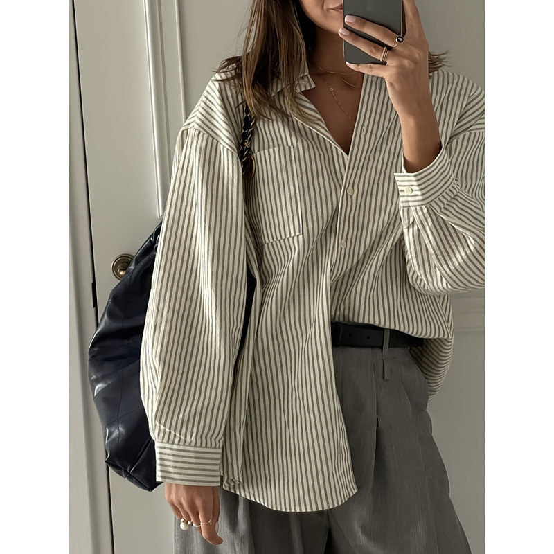 Women's Shirt Blouse Striped Stylish Casual Long Sleeve Shirt Collar Regular Tops Daily Buttons Pocket Print Gray Summer Spring