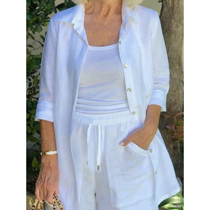 Women's Cotton Linen Sets Two Piece Sets Fashion Casual Comfort Home Daily Vacation Linen Summer Spring Home Outfits