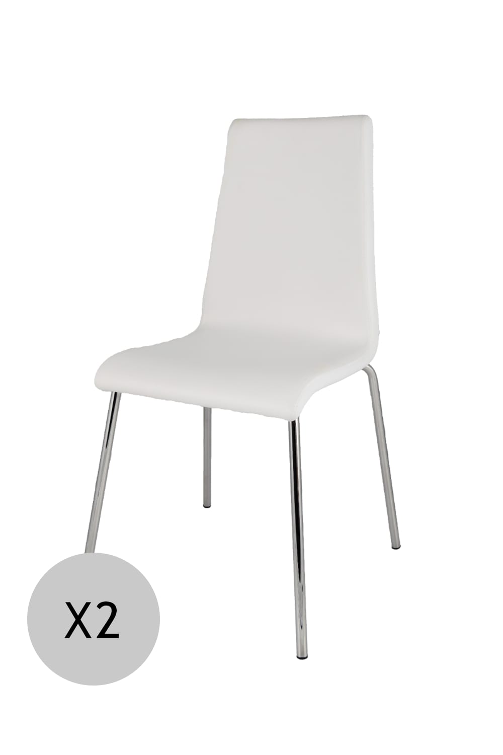 Set 2 Sedie in acciaio imbottite rivestite in finta pelle bianca