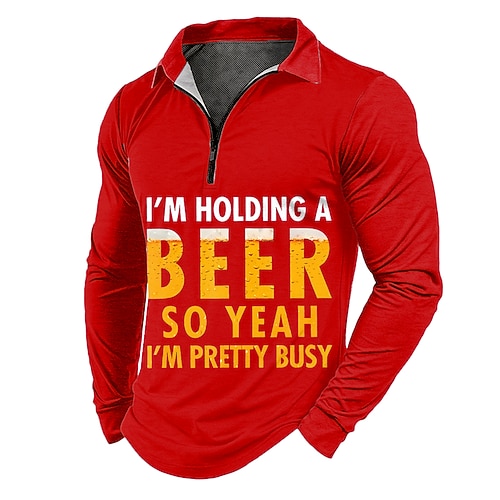 Herren Langarm Grafik Polo Shirt Ich halte ein Bier also ja ich bin ziemlich beschäftigt Hobbys Lebensstil Humor