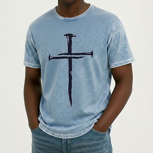 Maglietta T-Shirt Uomo Bibbia Croce Gesù Maglietta Lavaggio Minerale Maniche Corte Maglietta Lavaggio Acido Collo A Giro Camicia Religiosa Vintage Retro Casual Quotidiano Blu Viola Grigio Estate