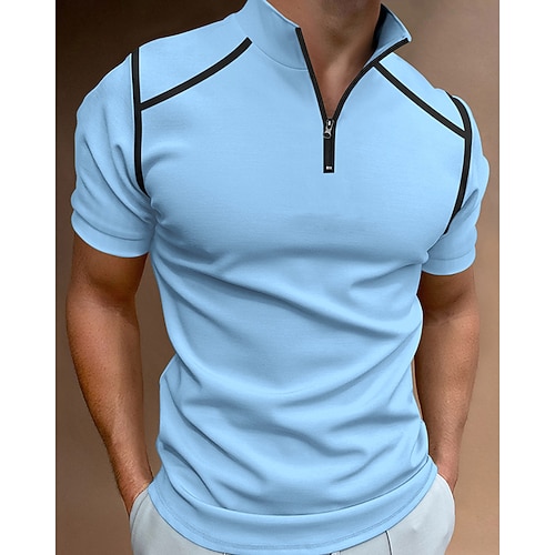 Per uomo Polo Camicia da golf Golf Esterno Strada Bavero Manica corta Di tendenza Informale Color Block Primavera estate Standard Rosa Azzurro cielo Cachi Polo