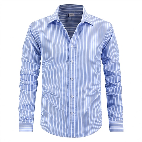 Per uomo Camicia Camicia elegante Camicia con Bottoni A righe Matrimonio Quotidiano Blu Azzurro cielo Verde Kaki Manica Lunga Collo ripiegato Primavera Autunno Abbigliamento Bottoni