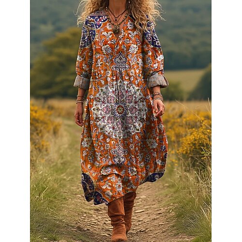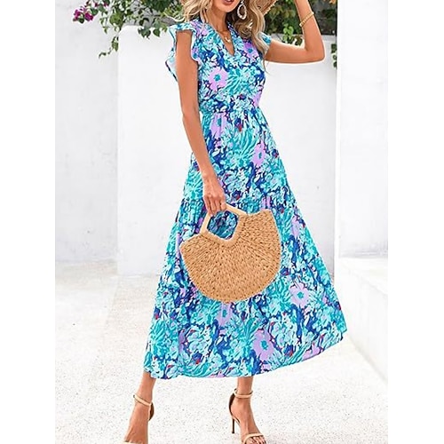 Per donna Abito maxi Abito aderente e svasato Vacanza Casual Boho Feste Quotidiano Uscire Vestibilità regolare Floreale A Pois Manica Lunga Girocollo Blu Azzurro cielo Viola Verde Autunno Inverno