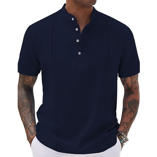 Per uomo Camicia Camicia con colletto alla coreana Camicia popover Camicia casual Nero Bianco Giallo Blu reale Azzurro cielo Manica Lunga Semplice Henley Vacanza Quotidiano Tasca Frontale