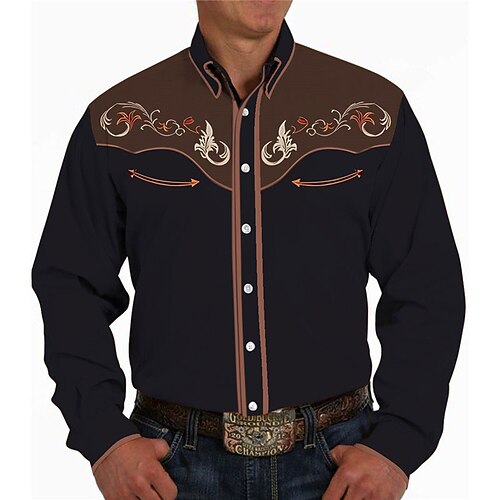 Herren Blumen Grafikdrucke Hemd Westernhemd Cowboy-Shirt Langarm Mode Streetwear Designer Täglich Outdoor Herbst Winter Umlegekragen Druck Button-Down Blau Himmelblau Purpur Braun Grau
