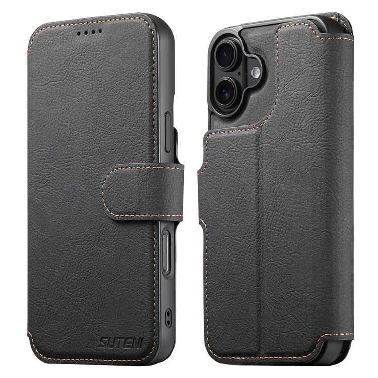 SUTENI iPhone 17 Konstläder Plånboksfodral Detachable Q-05 - Svart