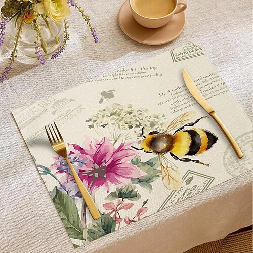 Tovaglietta da tavola in tessuto con motivo floreale e farfalle, 100% poliestere, rettangolare, con disegno floreale, farfalle e libellule, lavabile in lavatrice, resistente e termoresistente.