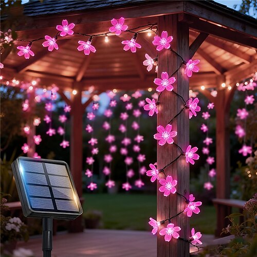 Solarbetriebene, transparente Kirschblütenlichterkette, 5 m, 20 LEDs, rosa, für Gartenbeleuchtung, Innenhöfe, Gärten, Balkone, Terrassen, Büsche, Hochzeitsdekoration, 1x