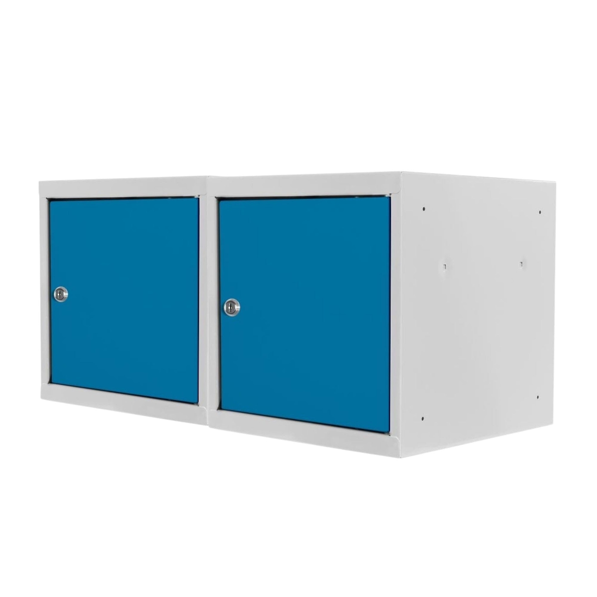 Proregal Mega Deal | 2x Schließfachwürfel Blocky mit Zylinderschloss + 2 Schlüssel | HxBxT 40x40x40cm | Lichtgrau/Lichtblau