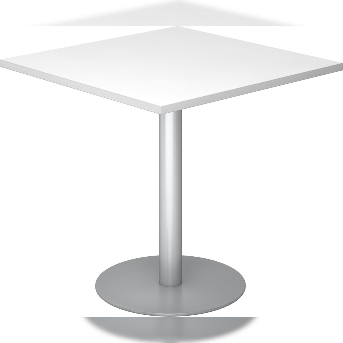 bümö Besprechungstisch, Esstisch klein, Tisch eckig 80x80 cm - kleiner Esstisch weiß, Rundtisch Esstisch 2 Personen mit Holz-Platte, Säule aus Metall