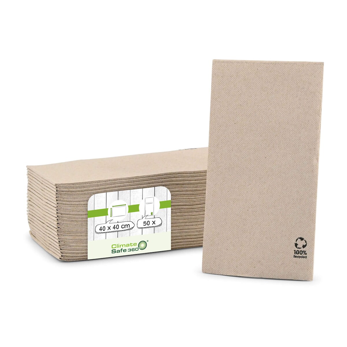 greenbox - Servietten aus recyceltem Papier (Premium) 40 x 40 cm, 2-lagig, 1/8 Falz, ungebleicht, 50 St.