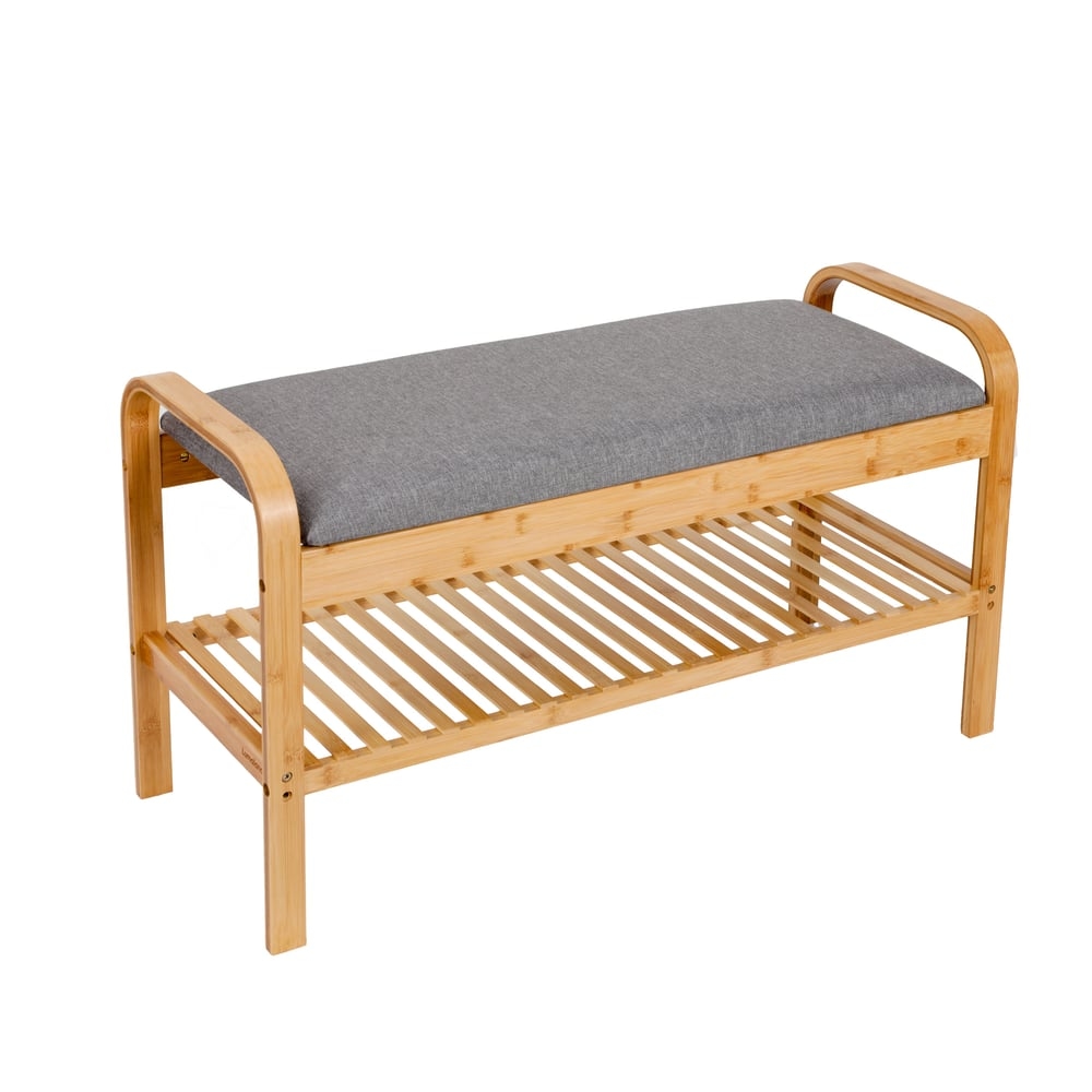 LUMALAND - Schuhregal aus Bambus mit Sitzbank - 90 x 50 x 30 cm - Grau