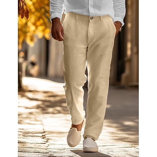 Herren Leinenhosen Hose Anzughose Sommerhose Strandhose Fronttasche Gerader Schnitt Einfach Komfort Atmungsaktiv Formell Geschäft Ferien Mode Basic Blau 1# Weiß
