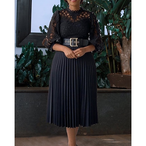 Per donna Abito Midi Abito in Raso Vestito da Festa Abito da Cocktail Abito Elegante Elegante Romantico Festa serale Feste Compleanno Vestibilità regolare Semplice Manica Lunga Girocollo Nero Bianco
