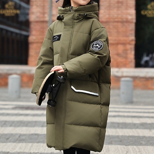 Kinder Jungen Daunenmantel Oberbekleidung Buchstabe Langarm Mantel Outdoor Baumwolle Cool Täglich Rote Blau Grün Herbst Winter 7-13 Jahre