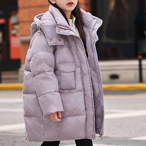 Kinder Mädchen Daunenmantel Einfarbig Mode Reißverschluss Tasche Schule Mantel Oberbekleidung 4-12 Jahre Winter Gelb Rosa Rote