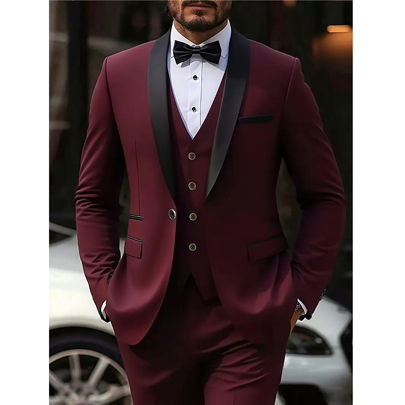 Men's Wedding Suits Peak Burgundy Dark Green Business WorkWear Solid Colored Tailored Fit 2 Piece Double Breasted Six-buttons