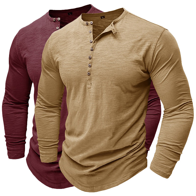 Men's Waffle Tee Waffle Henley Shirt Shirts With Elbow Patches Long Sleeve V Neck Henley Spring Fall Fall Winter Solid Color Fashion Basic Casual Fake two piece Casual Street Sports Black White