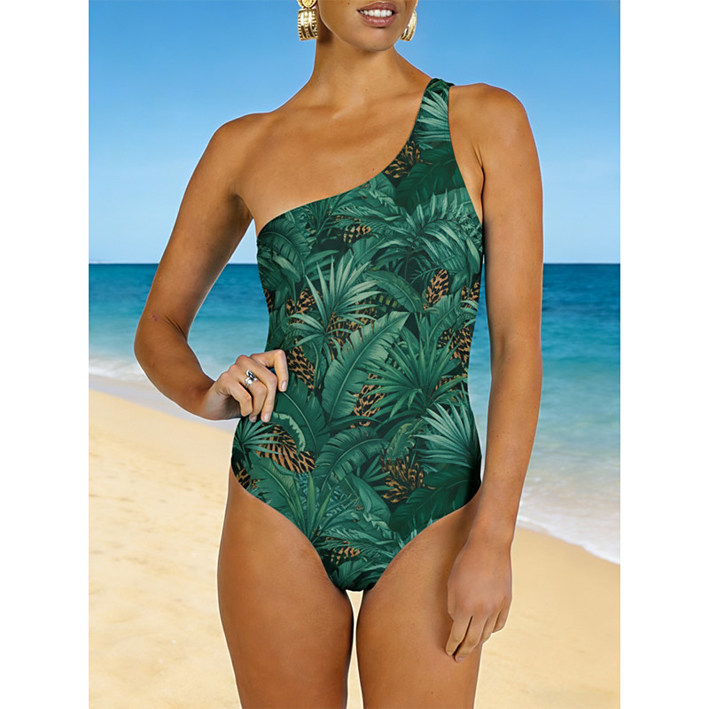 Women's Swimwear One Piece Monokini Swimsuit Tummy Control High Waist Slim One Shoulder Backless Vacation Beach Wear Floral Tropical Asymmetric Neck Sleeveless Bathing Suits