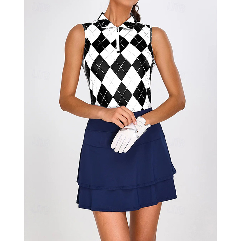 Women's Plaid / Check Sport Shirt Golf Polo Shirt Tennis Shirt Sleeveless Zipper High Elasticity Moisture Wicking Breathable Tennis Golf Pickleball Turndown Zip Collar Shirt Top Dark Pink Black Pink