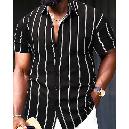 Per uomo Camicia Camicia Estiva Camicia casual Camicia da Spiaggia Camicia con Bottoni Nero Verde chiaro Blu reale Verde Kaki Manica Corta A righe Bavero Vacanza Camicia hawaiana Abbigliamento