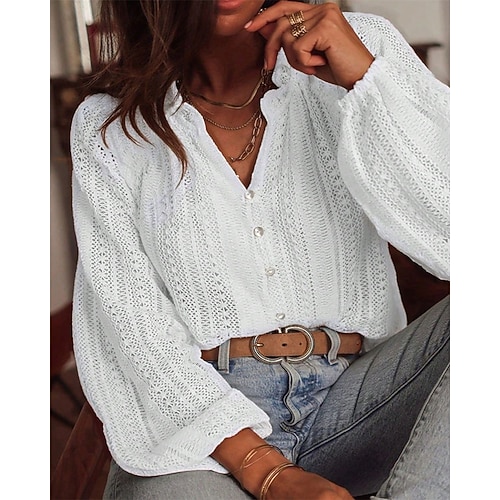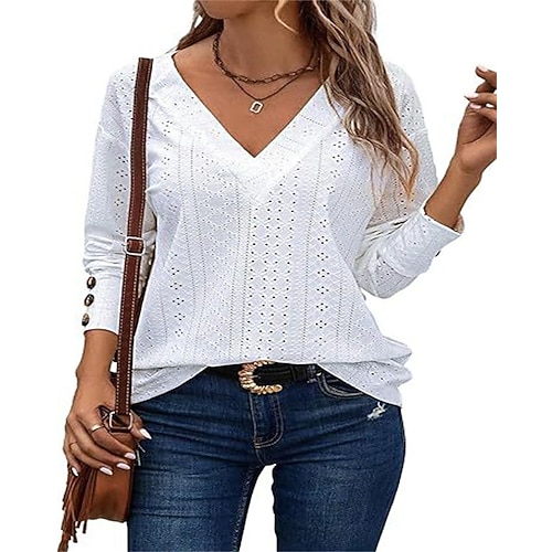 Per donna Camicia Top Eleganti Semplice Elegante Signore Classico Manica Lunga Scollo a V Top Regolari Lavoro Quotidiano Ferie Traforato Bottoni Bianco Rosa Rosso Blu Reale Viola Primavera Autunno