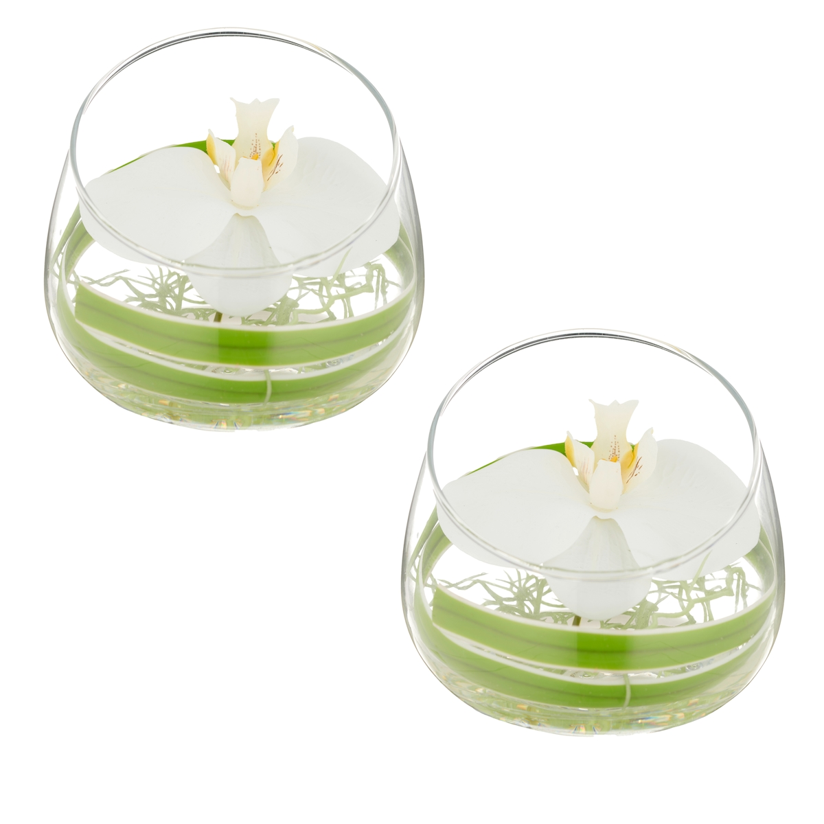 CREATIV green künstliche Pflanze Phalaenopsisblüte im Glas, 11x12cm, mit Resin, im 2er Set
