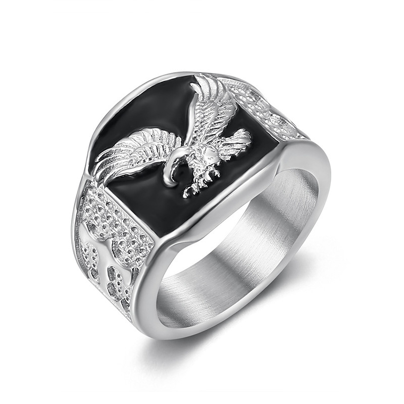 Men's Stainless Steel Eagle Ring, Black Enamel Design with Gold and Silver Finish, Fashion Statement Ring, Perfect for Casual or Formal Occasions