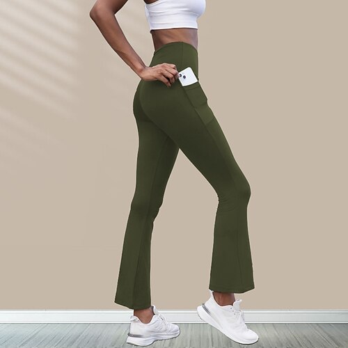 Per donna Attivo Pantaloni a zampa Casual / Sportivo Lunghezza intera Vita Alta Semplice Tasca Elastico in vita Sollevamento glutei Confortevole Elasticizzato Sportivo Sport Nero Rosa Verde militare
